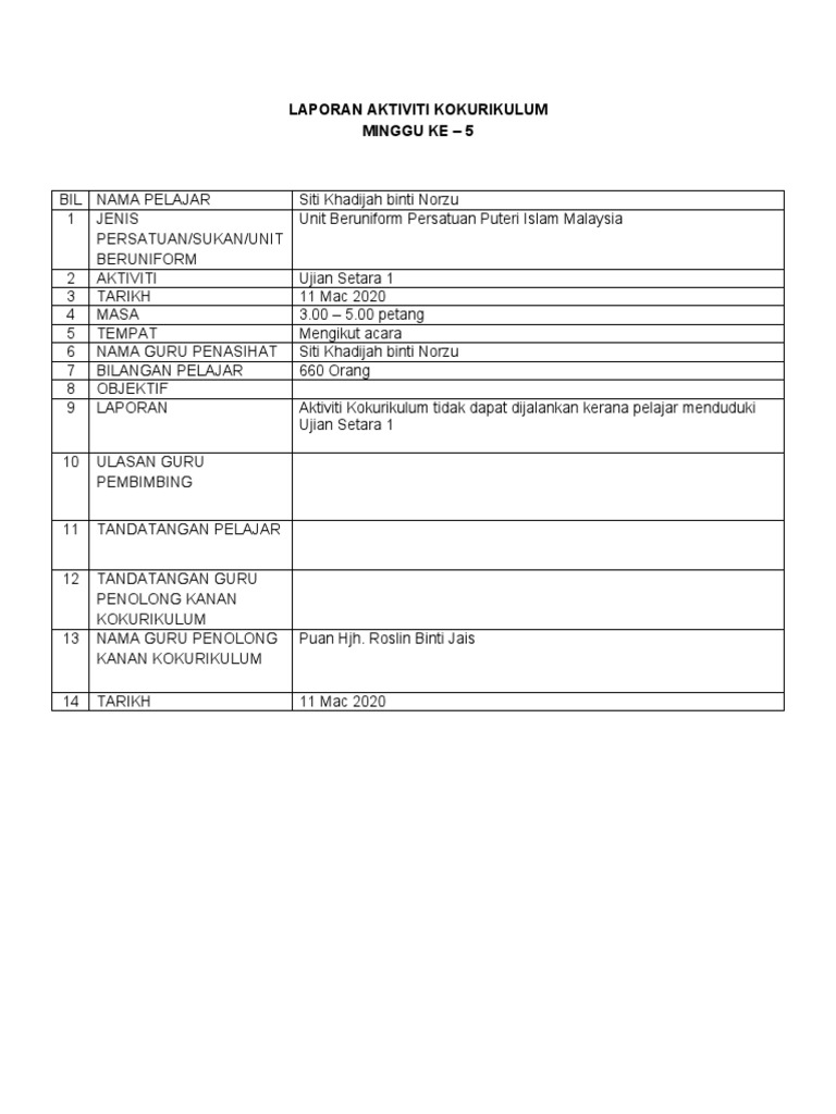 Laporan Aktiviti Kokurikulum Minggu Ke 3 Pdf
